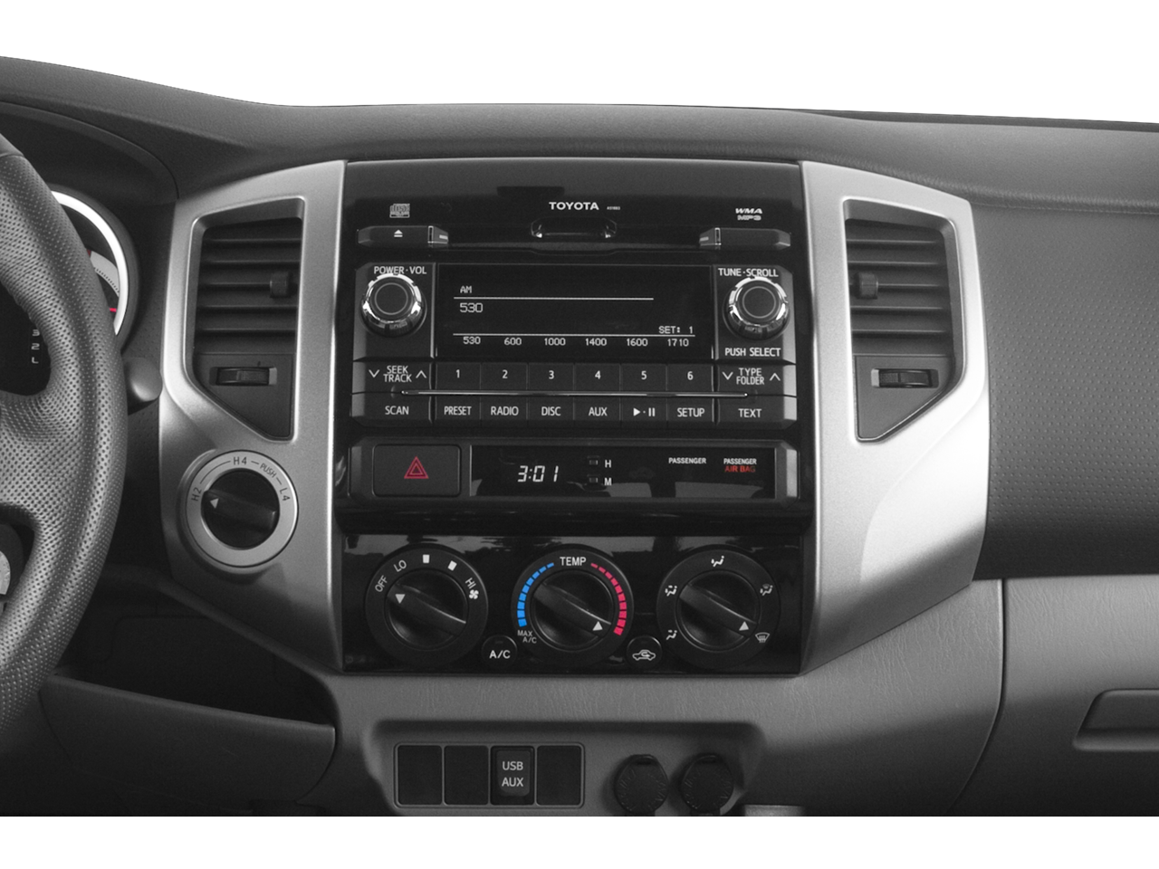 - Radio: Entune AM/FM/CD -inc: MP3/WMA playback capability, 6.1" touch-screen display, auxiliary audio jack, USB 2.0 port, iPod connectivity and control, Bluetooth® hands-free phone capability, phone book access and music streaming